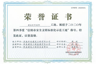 信陽安全文明標準化示范工地榮譽