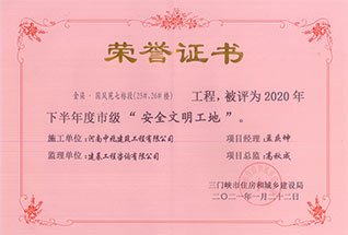 河南省市政工程省級安全文明工地榮譽(示范區(qū)支路項目)