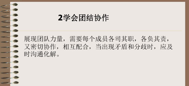 馬云曾說(shuō),優(yōu)秀的團(tuán)隊(duì)就是幫助團(tuán)隊(duì)中每一個(gè)人成功。這意味著團(tuán)隊(duì)中的每個(gè)人都要團(tuán)結(jié)一致,互幫互助,相互成就。